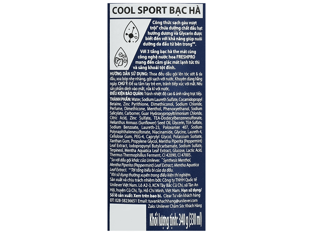 | Dòng sản phẩm | Clear Men Cool Sport (Bạc Hà) |