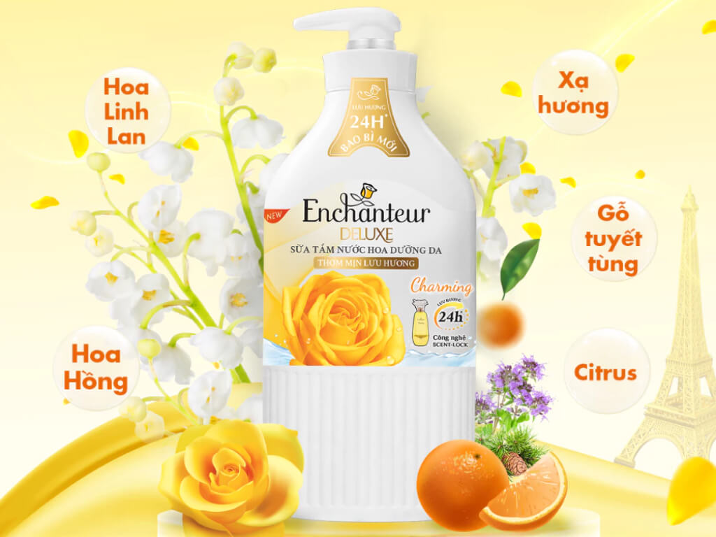 Da mịn như lụa, thơm ngát hương Pháp! Hãy ghé ngay Siêu thị mini Huyền Anh để sở hữu chai sữa tắm Enchanteur Deluxe Charming 650g cho riêng mình nhé.